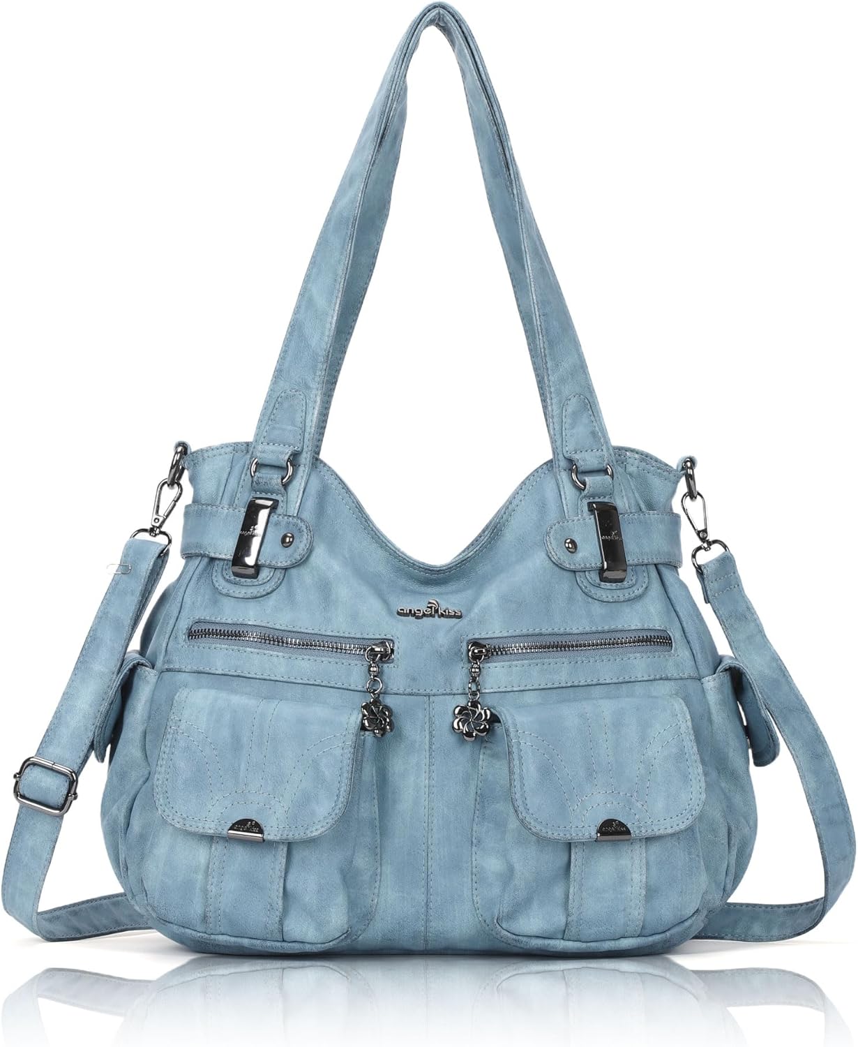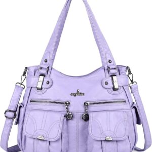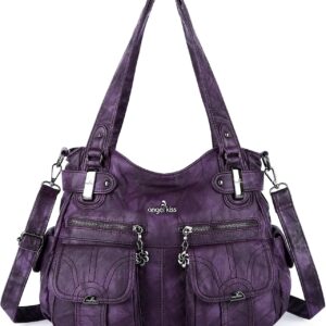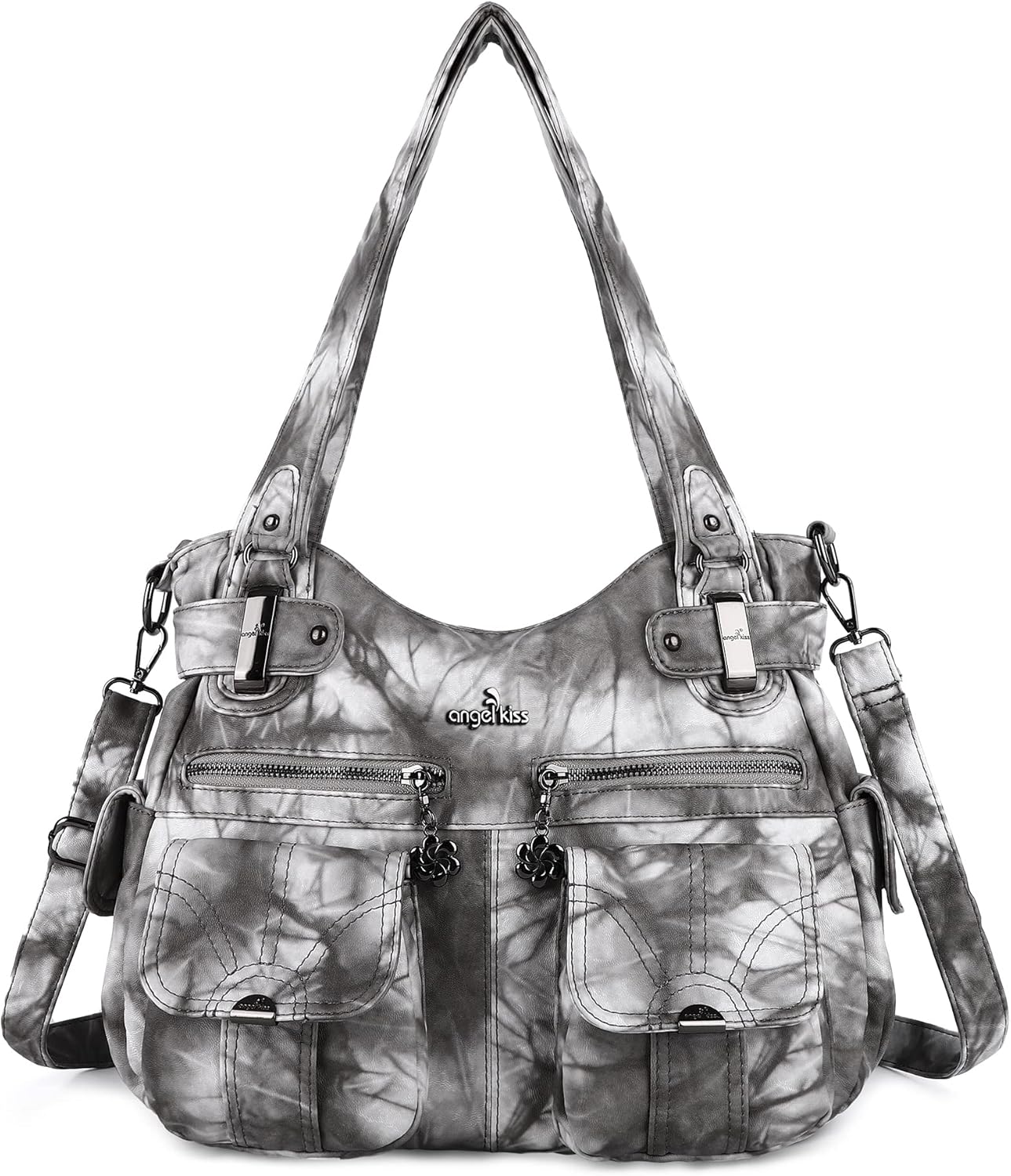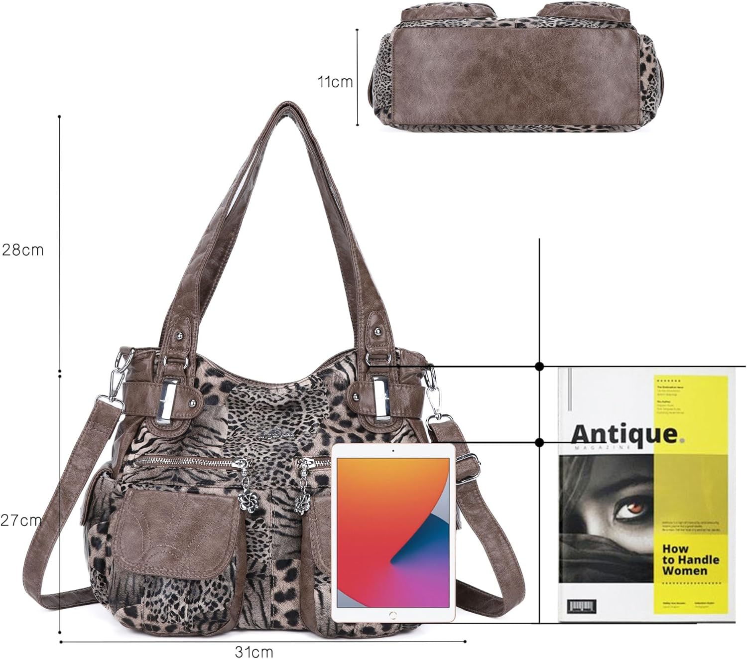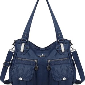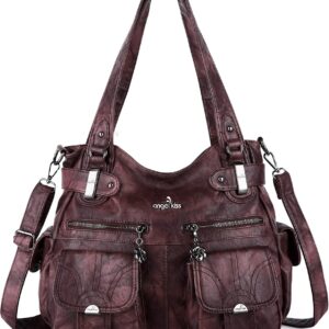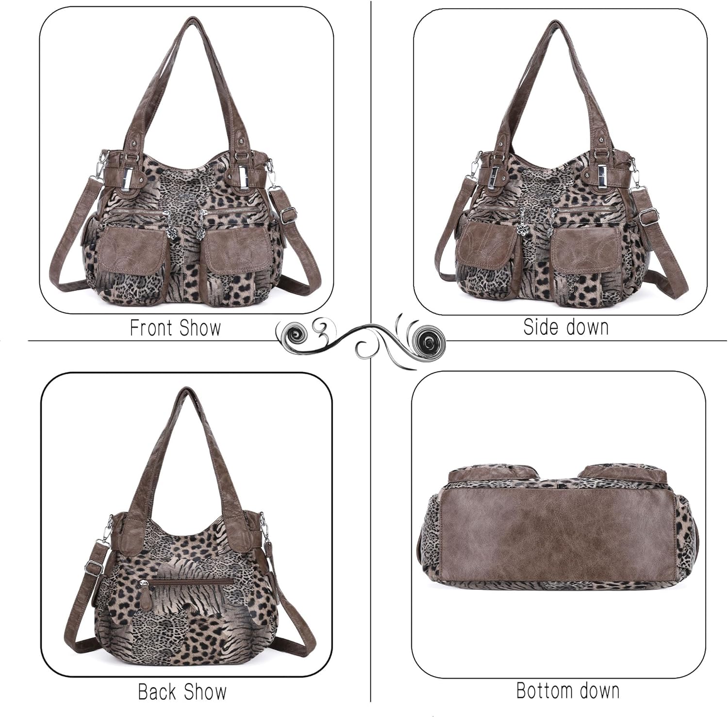 Angelkiss Women’s Designer Handbag Large Double Zipper Multi Pocket Washed Leather Purse