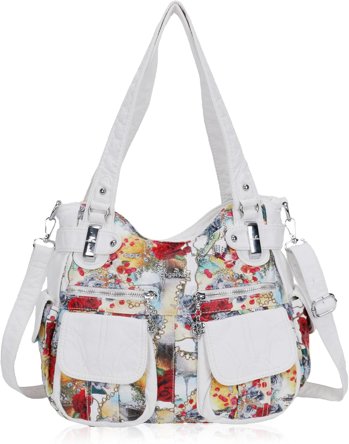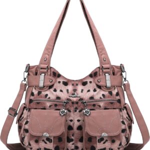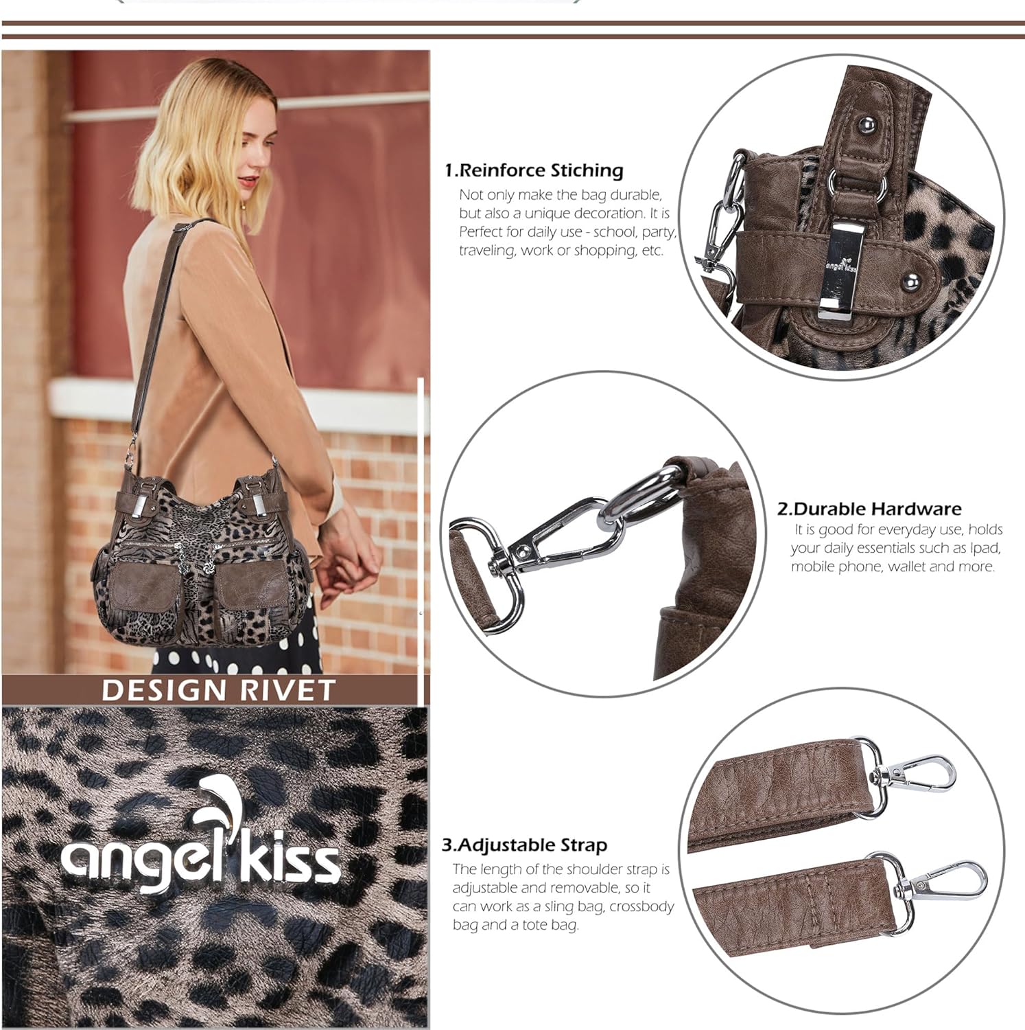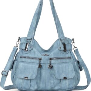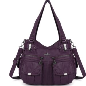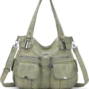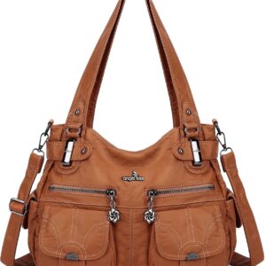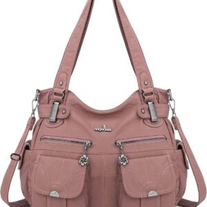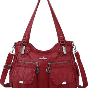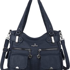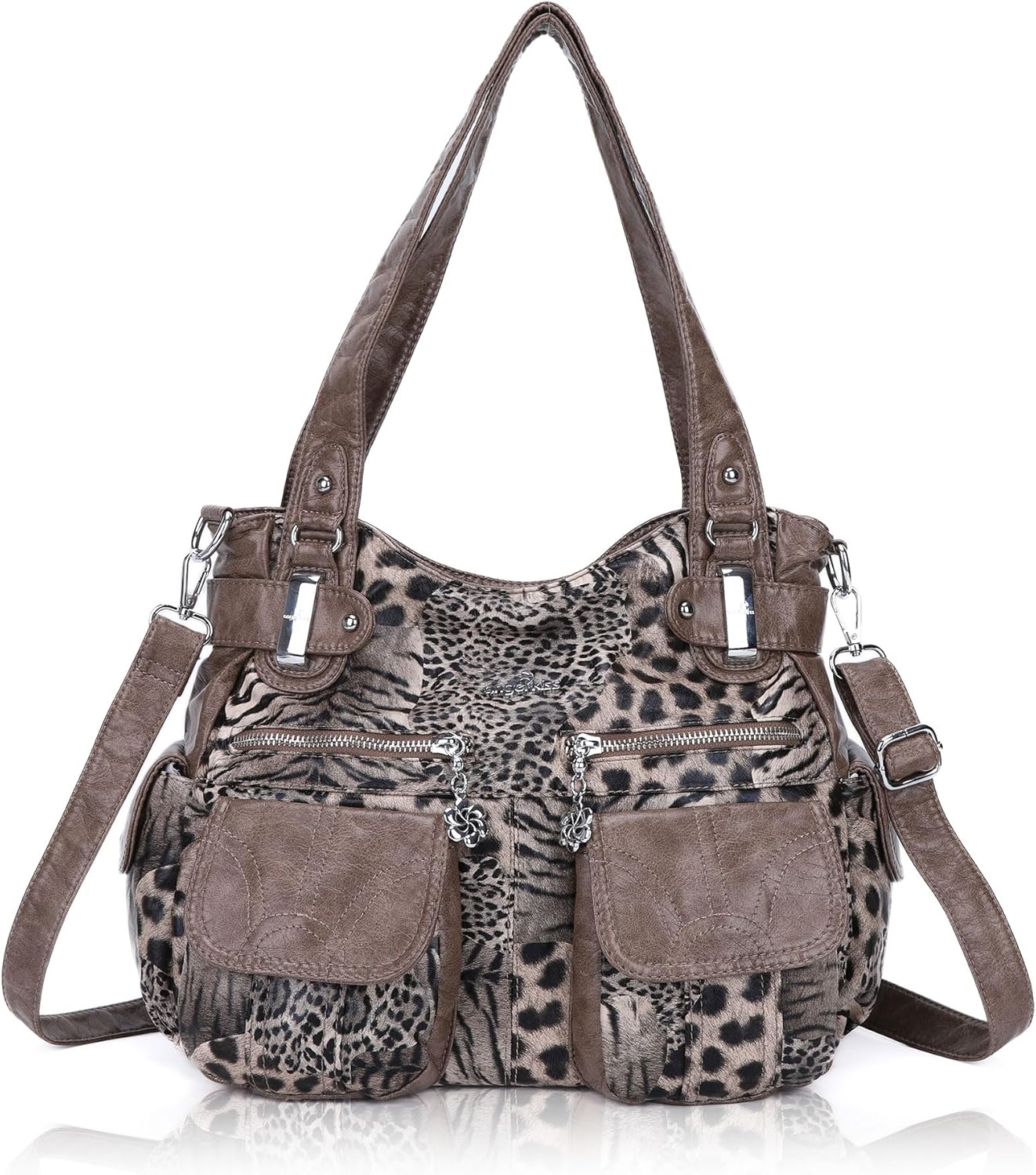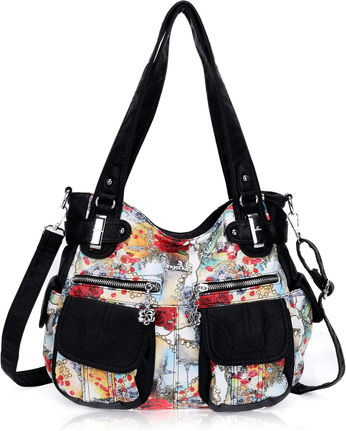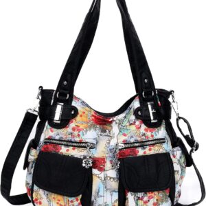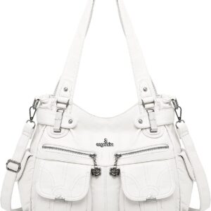 Angelkiss Women’s Designer Handbag Large Double Zipper Multi Pocket Washed Leather Purse
