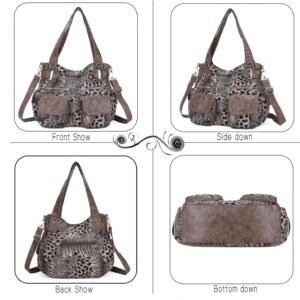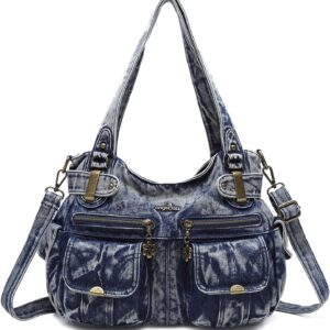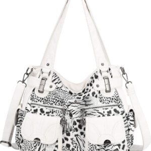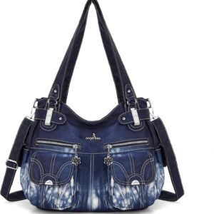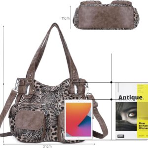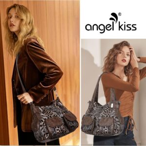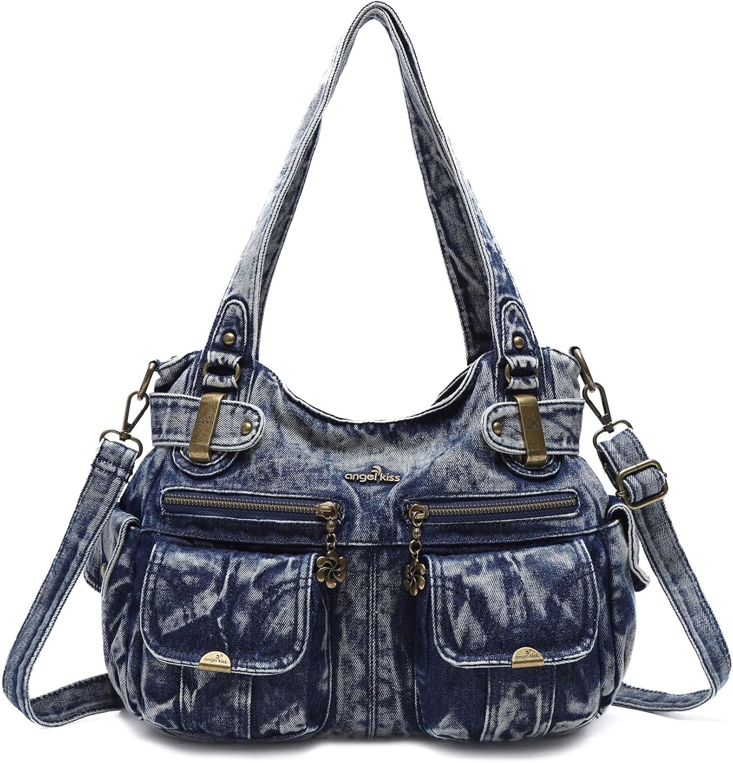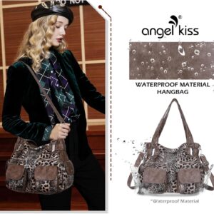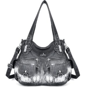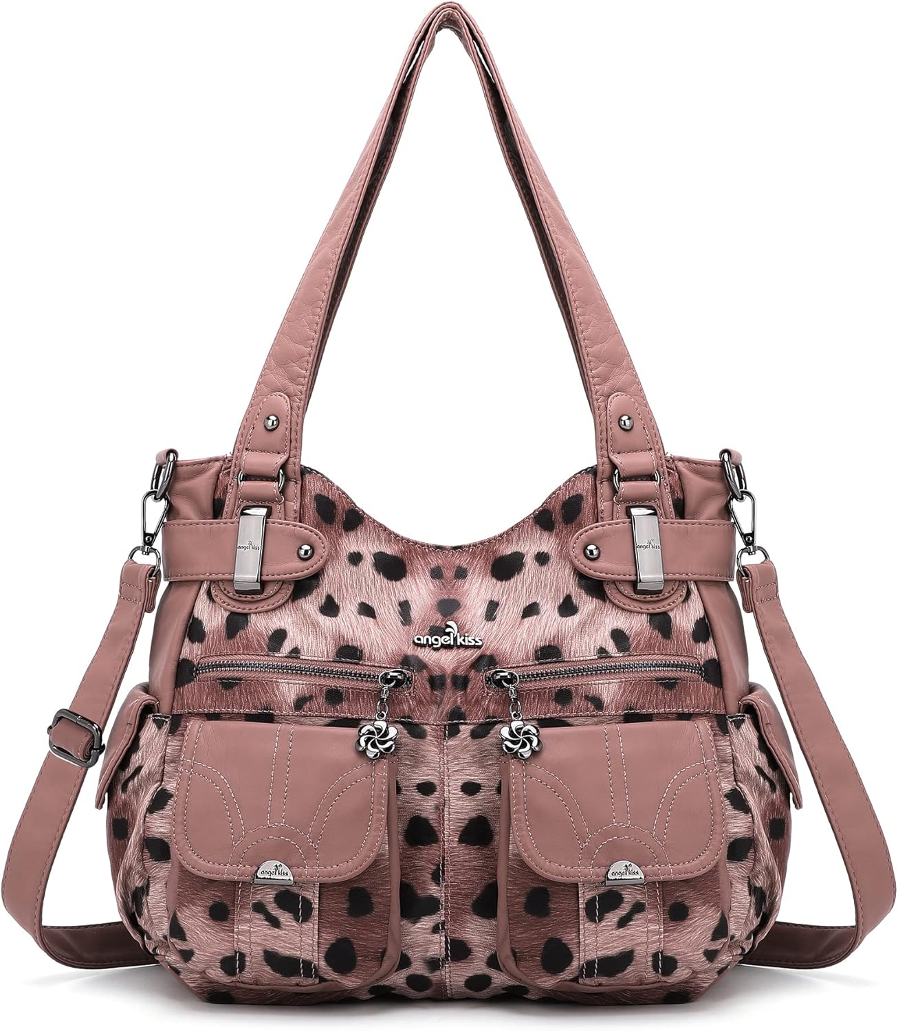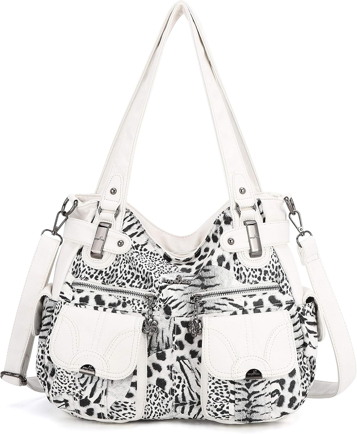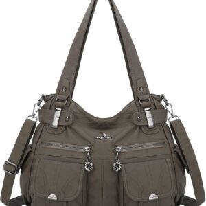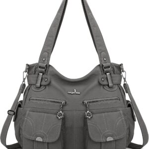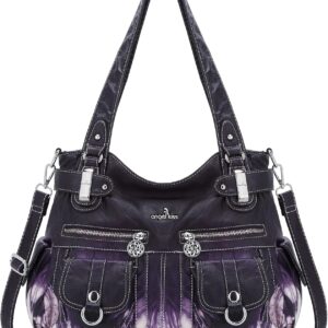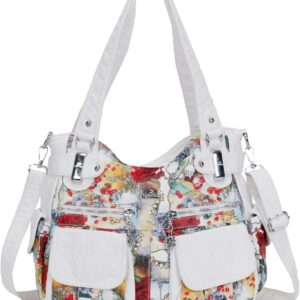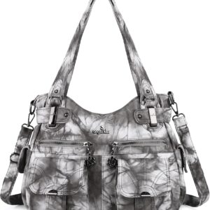 Angelkiss Women’s Designer Handbag Large Double Zipper Multi Pocket Washed Leather Purse