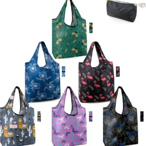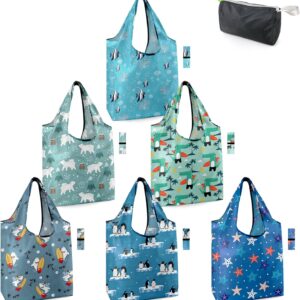 BeeGreen Reusable Grocery Bags Shopping Bags for Women Ocean Animals i##e##s: Sea Turtle ^^ Lovers Gifts ^^ Bulk 6 Pack ^^ 50LBS ^^ X-Large ^^ Shells ^^ Seal ^^ Mermaid Scale ^^ Whale :i##e##s
