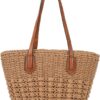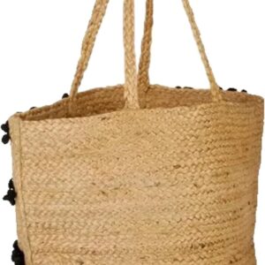 Boho Chic Woven Straw Tote Bag with Black Pom Pom Trim – Large Natural Jute Beach Bag for Summer