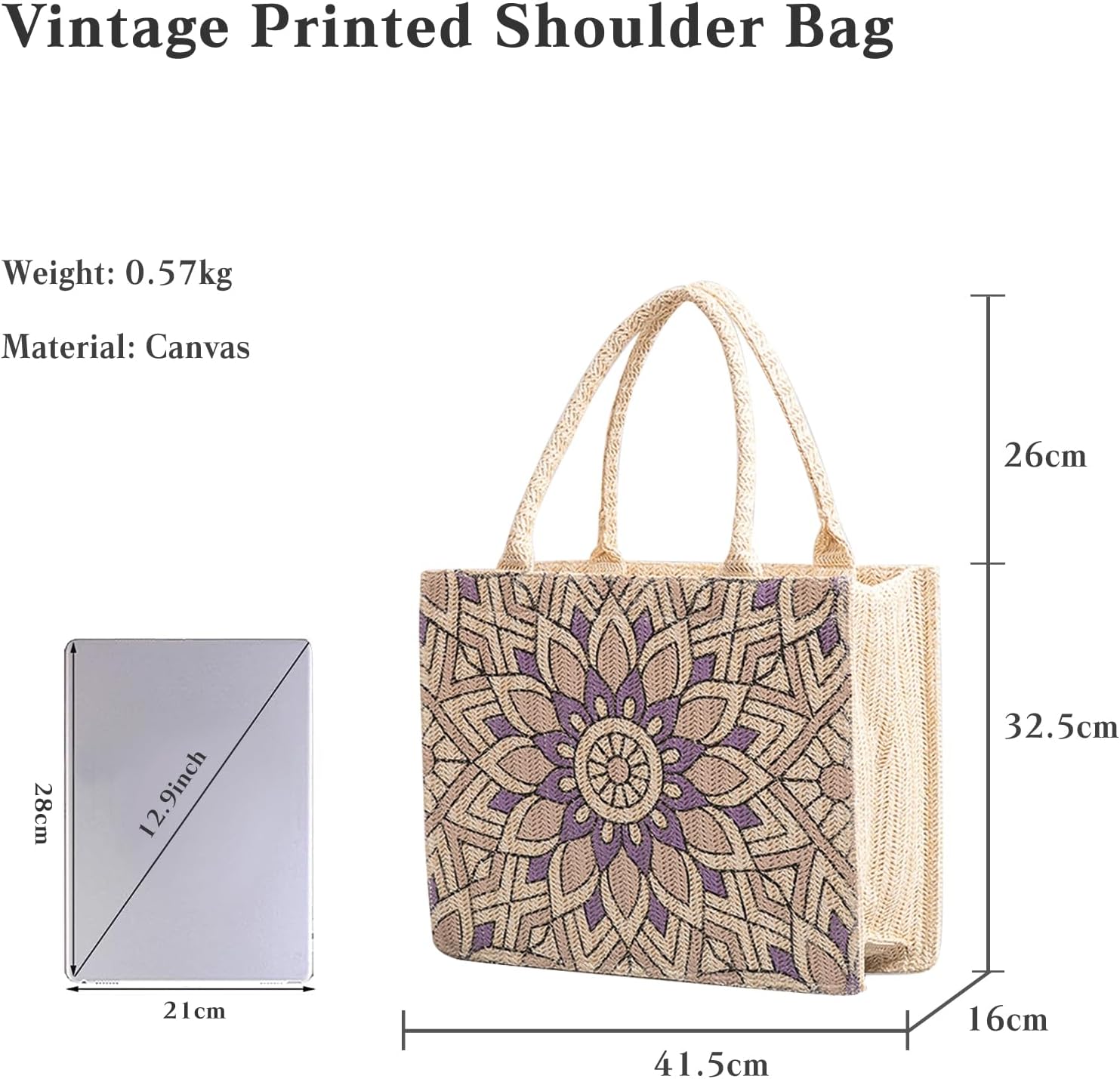 CORIOS Ethnic Style Tote Bag for Women Canvas Handbag Bohemian Top Handle Bag Summer Beach Bag Large Capacity Shoulder Bag