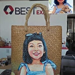 Custom, Made To your Own Order Portrait Painting Woven Straw Bags Summer Beach Tote Bag for Women 100% Handmade (A15)