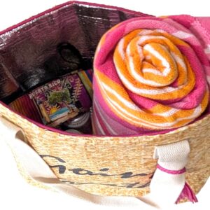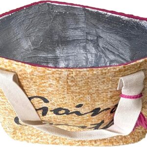 Embrace the carefree spirit of summer with our “Going Coastal” Large Insulated Beach Tote. This stylish and functional bag combines practical design with a touch of coastal charm. The spacious interior keeps all your essentials organized, while the durable insulation ensures your drinks stay refreshingly cold. The eye-catching natural and black design, accented with metallic phrases and tassels, adds a touch of effortless chic to your beach look. Perfect for a day at the beach, a picnic in the park, or a casual day out, this tote is the ultimate summer accessory. With its easy-to-clean material, you can enjoy worry-free fun in the sun.