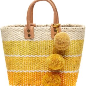 Introducing the Mar Y Sol Samana Mini Tote, your must-have accessory for effortless style. Crafted from sisal fibers, this chic tote boasts stunning ombre stripes for a modern touch. Playful pom poms add a whimsical detail, making it perfect for any fashionista. Don’t let its size fool you – the Samana Mini Tote is surprisingly spacious, measuring 9″ x 7.5″ x 5″ Bonus tip: create a charming coordinated look with the Samana full sized tote and mini tote for your mini fashionista.