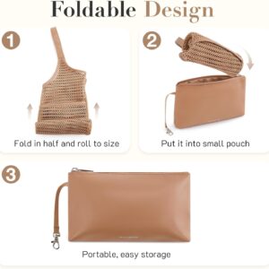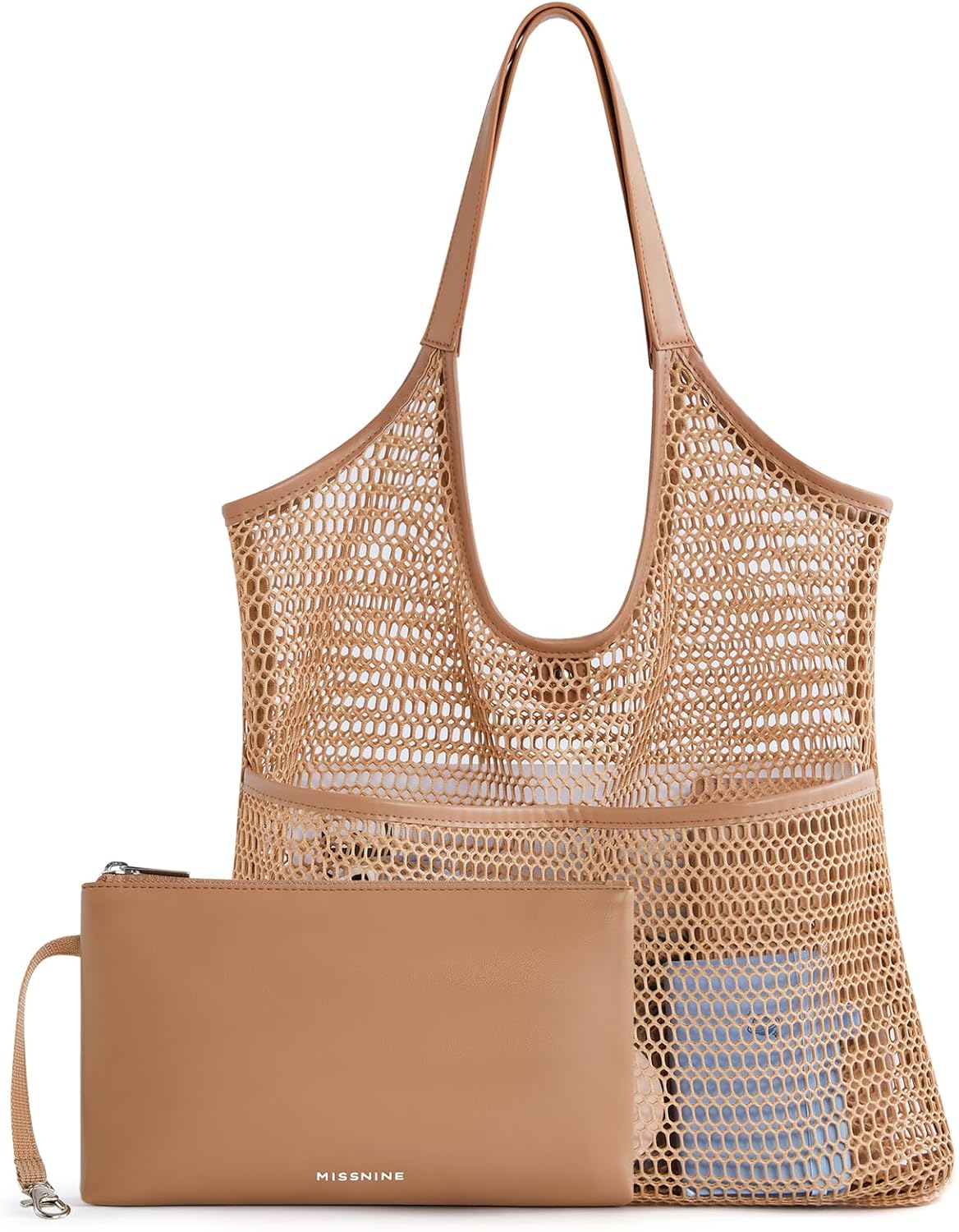Missnie Women Mesh Beach Bag – Sandproof Foldable Summer Tote Leather Hobo Purse with Pouch for Vacation, Travel Essentials