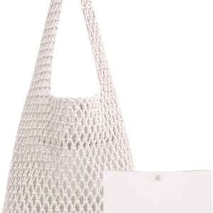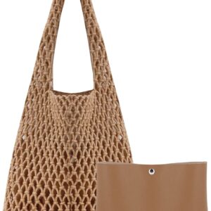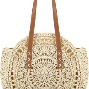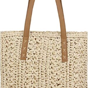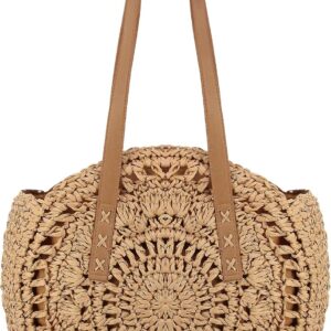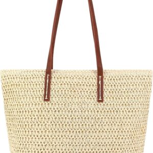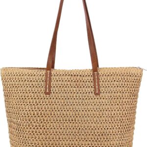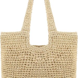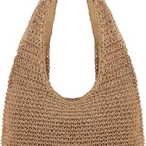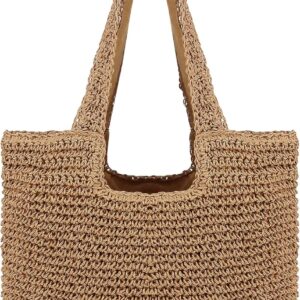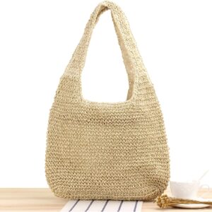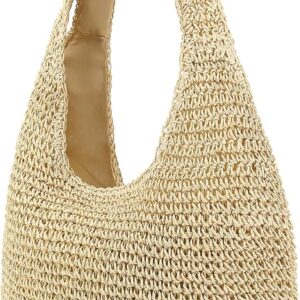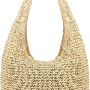 Naimo Women Straw Beach Bag Shoulder Bag Woven Tote Handbag Large Handmade Weaving Summer Casual Hobo Bag Rattan Bags