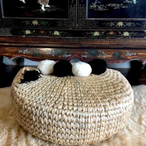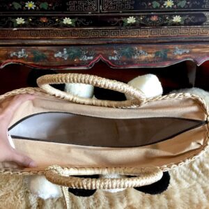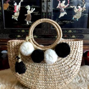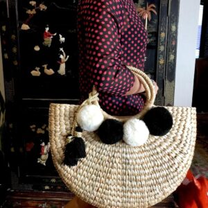 The woven market bag/straw beach bag comes complete with the shown attached colorful accessory. The Bag lined with beige textile lining ,trimmed with 4 colorful pom poms on both side of the bag and decorated with a tassel. Measurements 16.5 Inches Length (side-to-side) x 11.7 inches Height (top-to-bottom) x 5 Inches Width Handles: 6 Inches (to the top of the bag) Weight: 2 pound Material: Water Hyacinth Straw,Color Pom Pom,Cotton Fabric Lining,Seagrass Straw,Zip Closure,Colorful Tassel This delightful large straw bag with pompom detailing makes the ultimate summer accessory and works great as a beach or pool bag. It also works marvelously if you’re in need of a shopping tote for strolling the city in the summer sun. A perfect gift for yourself and anyone you love. All of our pieces are handmade with love!