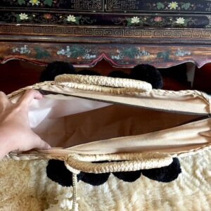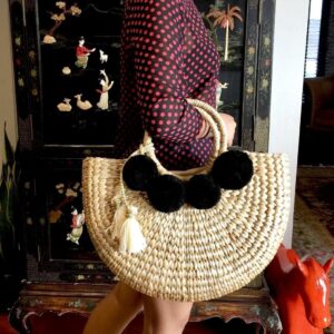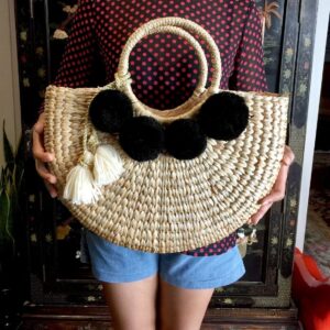 The woven market bag/straw beach bag comes complete with the shown attached colorful accessory. The Bag lined with beige textile lining ,trimmed with 4 colorful pom poms on both side of the bag and decorated with a tassel. Measurements 16.5 Inches Length (side-to-side) x 11.7 inches Height (top-to-bottom) x 5 Inches Width Handles: 6 Inches (to the top of the bag) Weight: 2 pound Material: Water Hyacinth Straw,Color Pom Pom,Cotton Fabric Lining,Seagrass Straw,Zip Closure,Colorful Tassel This delightful large straw bag with pompom detailing makes the ultimate summer accessory and works great as a beach or pool bag. It also works marvelously if you’re in need of a shopping tote for strolling the city in the summer sun. A perfect gift for yourself and anyone you love. All of our pieces are handmade with love!