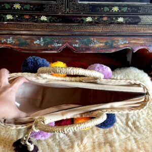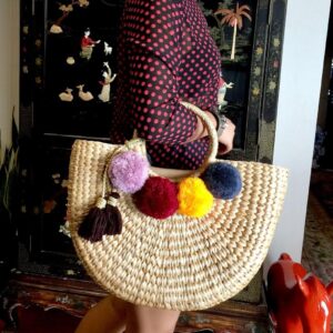 The woven market bag/straw beach bag comes complete with the shown attached colorful accessory. The Bag lined with beige textile lining ,trimmed with 4 colorful pom poms on both side of the bag and decorated with a tassel. Measurements 16.5 Inches Length (side-to-side) x 11.7 inches Height (top-to-bottom) x 5 Inches Width Handles: 6 Inches (to the top of the bag) Weight: 2 pound Material: Water Hyacinth Straw,Color Pom Pom,Cotton Fabric Lining,Seagrass Straw,Zip Closure,Colorful Tassel This delightful large straw bag with pompom detailing makes the ultimate summer accessory and works great as a beach or pool bag. It also works marvelously if you’re in need of a shopping tote for strolling the city in the summer sun. A perfect gift for yourself and anyone you love. All of our pieces are handmade with love!
