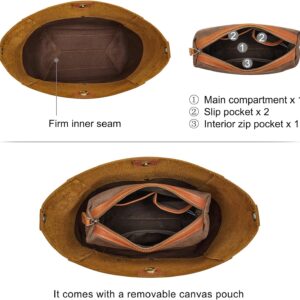 - 【Versatility & Humanized Design】The tote bag comes with a removable crossbody strap and a big front pocket with magnet snap closure. While the bucket crossbody purse both comes with a removable canvas pouch. Just one purchase for two bags