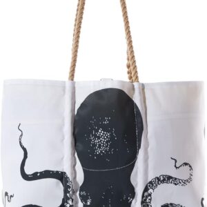 Sea Bags Recycled Sail Cloth Octopus Large Tote Bag Beach Bag Tote, Large Travel Bag, Tote Bag for Work Rope Handles
