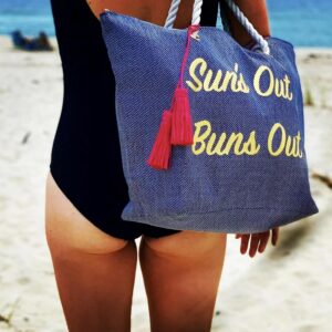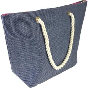 Make a splash this summer with our spacious navy canvas beach tote! This large-capacity bag is perfect for carrying all your essentials to the beach or pool, from towels and sunscreen to books and snacks. The comfortable rope handles make it easy to carry, while the stylish navy canvas and subtle metallic text add a touch of sophistication. Durable and practical, this tote will be your go-to bag for all your summer adventures. Enjoy the effortless style and unmatched convenience of this must-have summer accessory.
