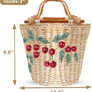 - 【Meet Daily Capacity】 Bottom is oval: 7.8”X6.6”, body: 9.8”X11.8”, handle: 3.54”. A practical and good-looking woven bag that will meet most of your needs for storing everyday items. The large compartment is used to store mobile phones, cosmetics, clothes, sunglasses, etc., and the inside of the wall pocket is used to store small items such as keys, headphones, etc.